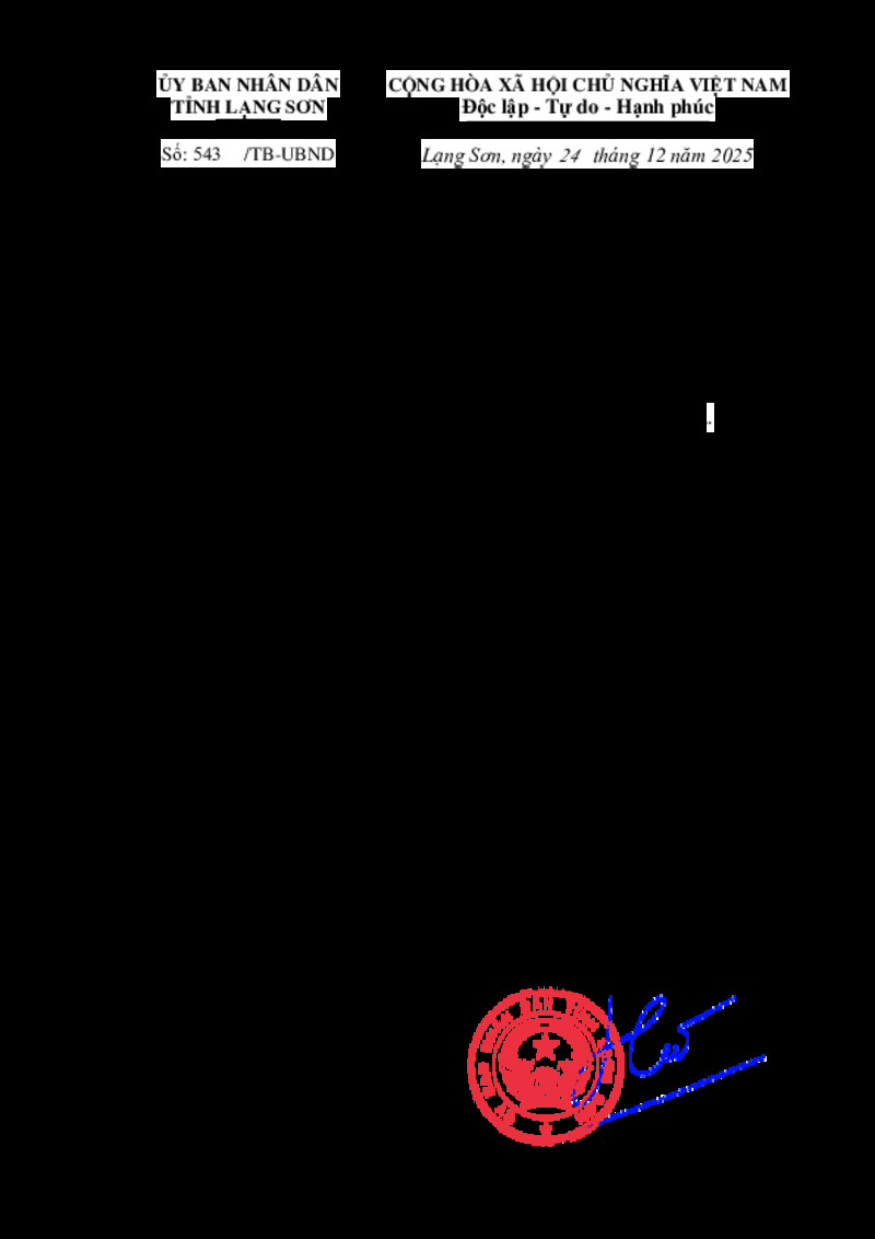 | Số hiệu | 543/TB-UBND | Cơ quan ban hành | UBND tỉnh |