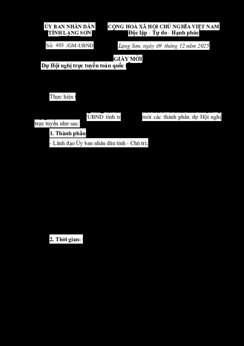 | Tiêu đề văn bản | Giấy mời Dự Hội nghị trực tuyến toàn quốc tổng kết công tác tư pháp năm 2025, nhiệm kỳ 2021-2025; định hướng công tác nhiệm kỳ 2026-2030 và triển khai nhiệm vụ trọng tâm năm 2026 | ||
