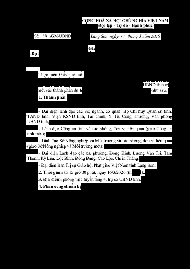 | Loại văn bản | Thông báo, giấy mời UBND tỉnh | Người ký | --- |