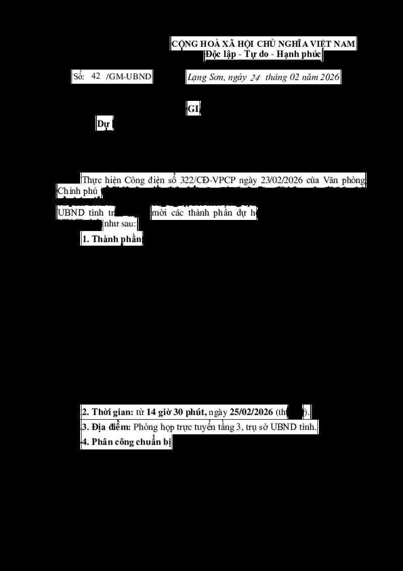 | Tiêu đề văn bản | Giấy mời Dự họp trực tuyến Phiên họp lần thứ nhất năm 2026 của Ban Chỉ đạo của Chính phủ về phát triển khoa học, công nghệ, đổi mới sáng tạo, chuyển đổi số và Đề án 06 | ||