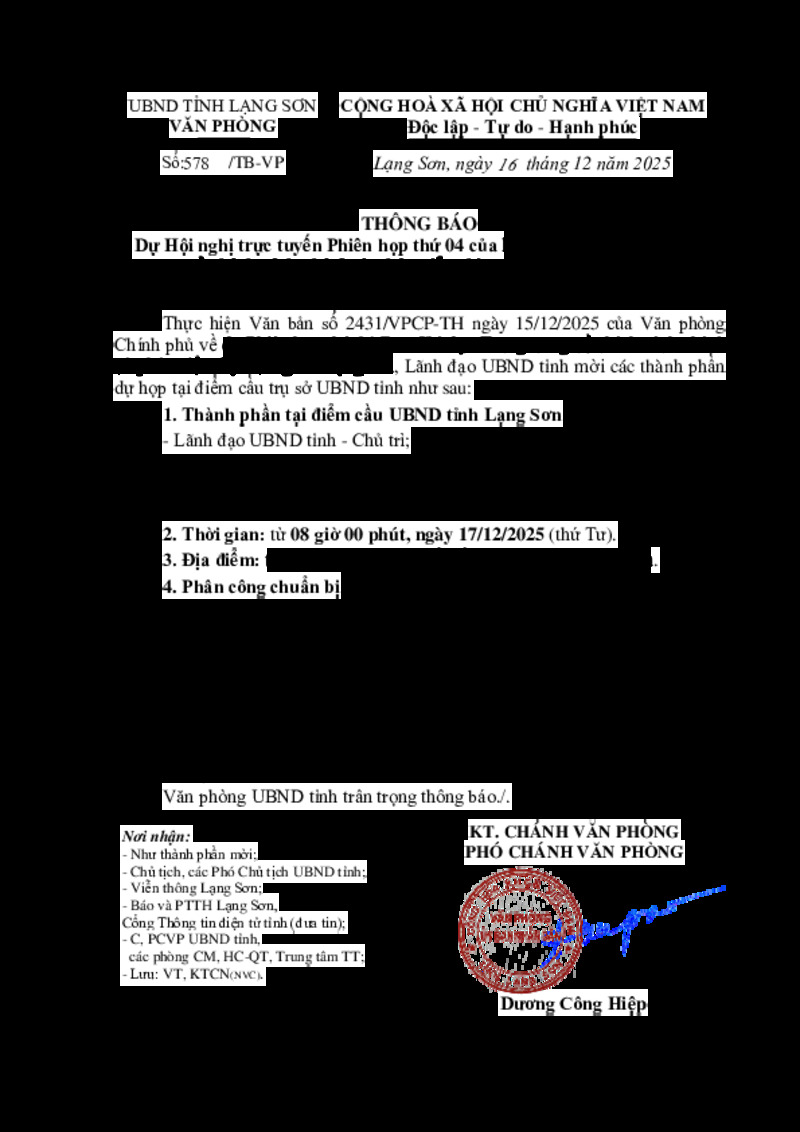 | Loại văn bản | Thông báo, giấy mời UBND tỉnh | Người ký | --- |