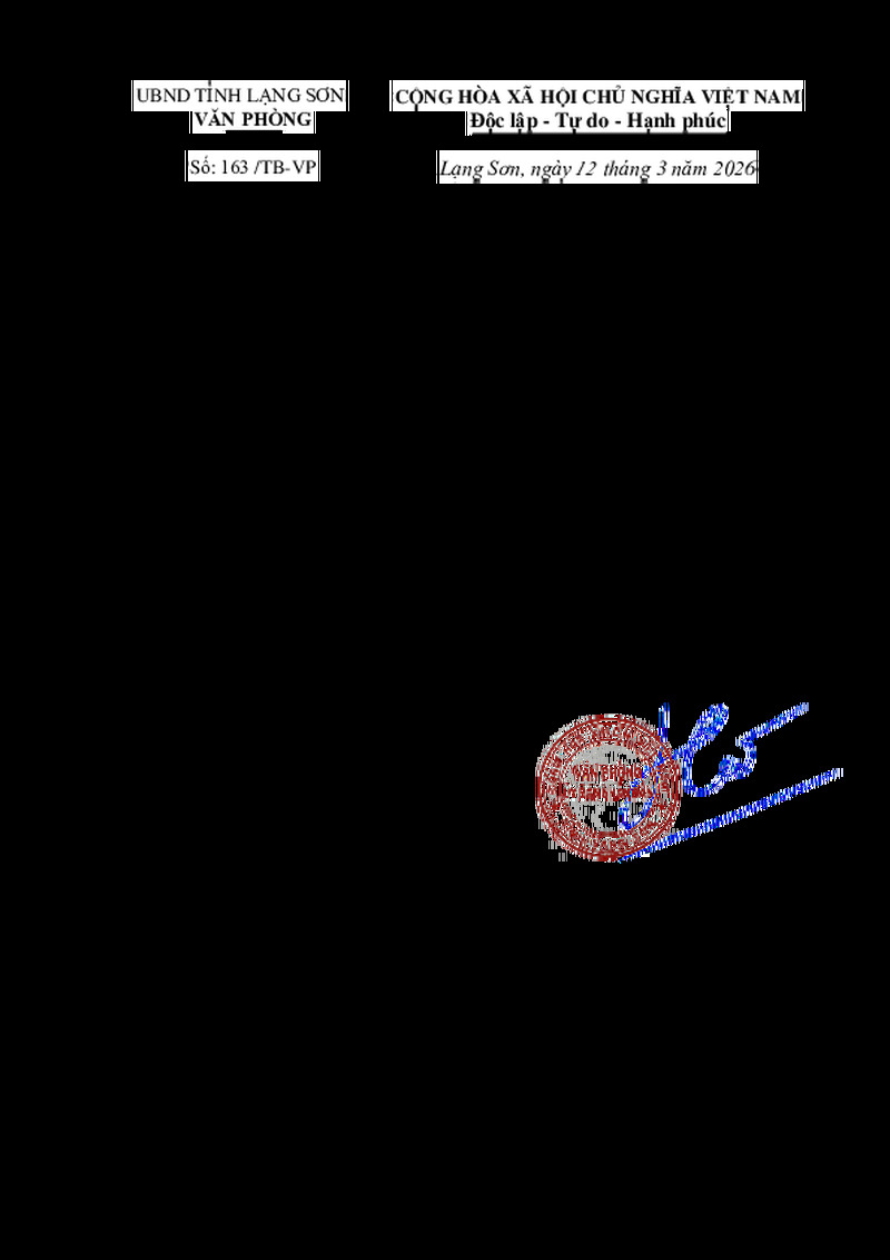| Số hiệu | 163/TB-VP | Cơ quan ban hành | --- |