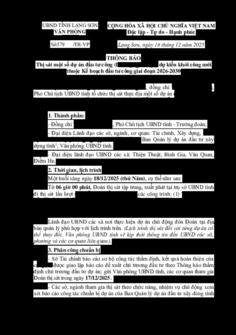 | Tiêu đề văn bản | Thông báo thị sát một số dự án đầu tư công (lĩnh vực giáo dục) dự kiến khởi công mới thuộc Kế hoạch đầu tư công giai đoạn 2026-2030 | ||
