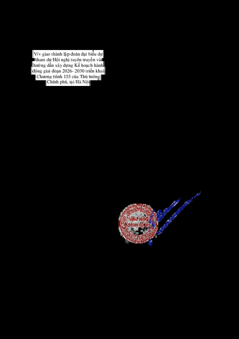 | Tiêu đề văn bản | V/v giao thành lập đoàn đại biểu dự tham dự Hội nghị tuyên truyền và hướng dẫn xây dựng Kế hoạch hành động giai đoạn 2026- 2030 triển khai Chương trình 155 của Thủ tướng Chính phủ, 21/4/2026 tại Hà Nội | ||