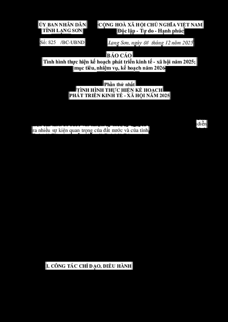 | Tiêu đề văn bản | Tình hình thực hiện kế hoạch phát triển kinh tế - xã hội năm 2025; mục tiêu, nhiệm vụ, kế hoạch năm 2026 | ||