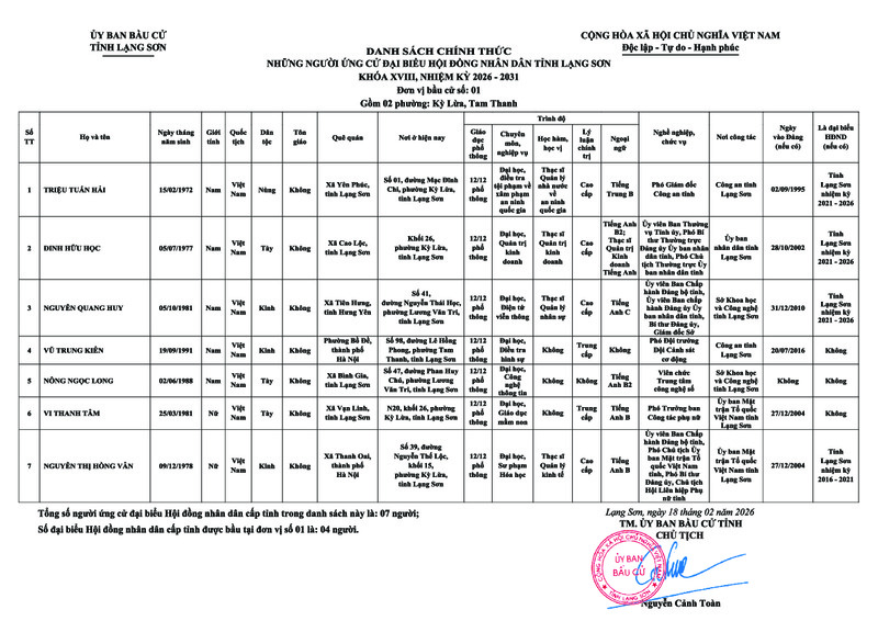 Danh sách ứng cử Đại biểu HĐND tỉnh