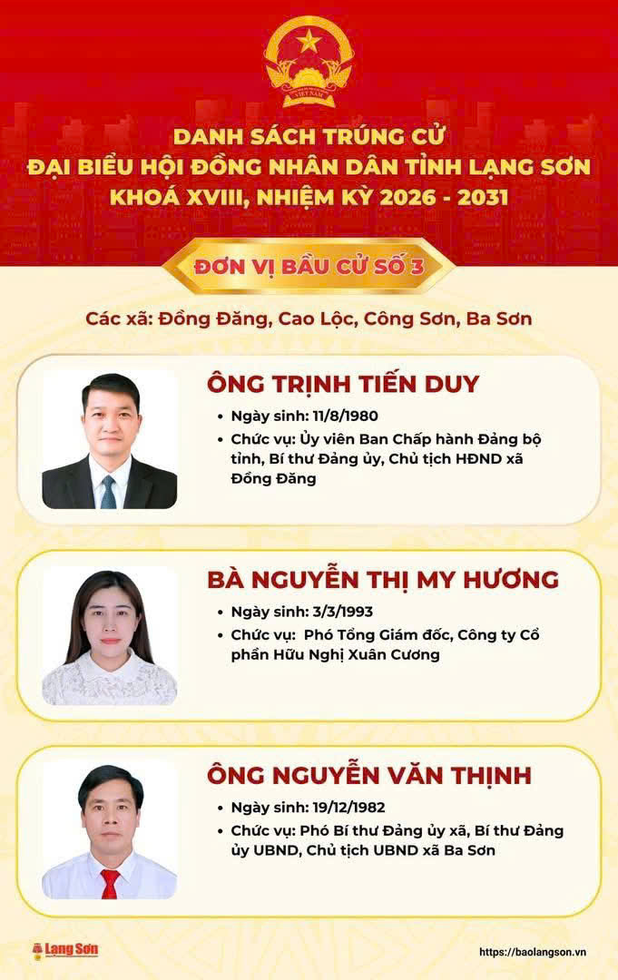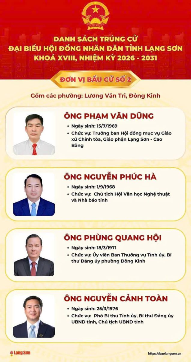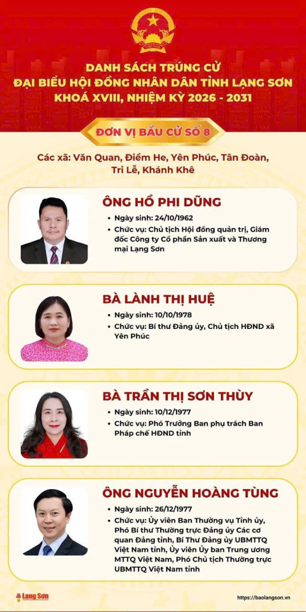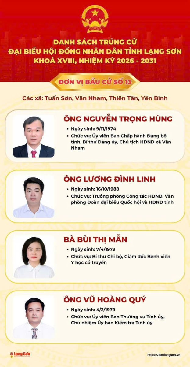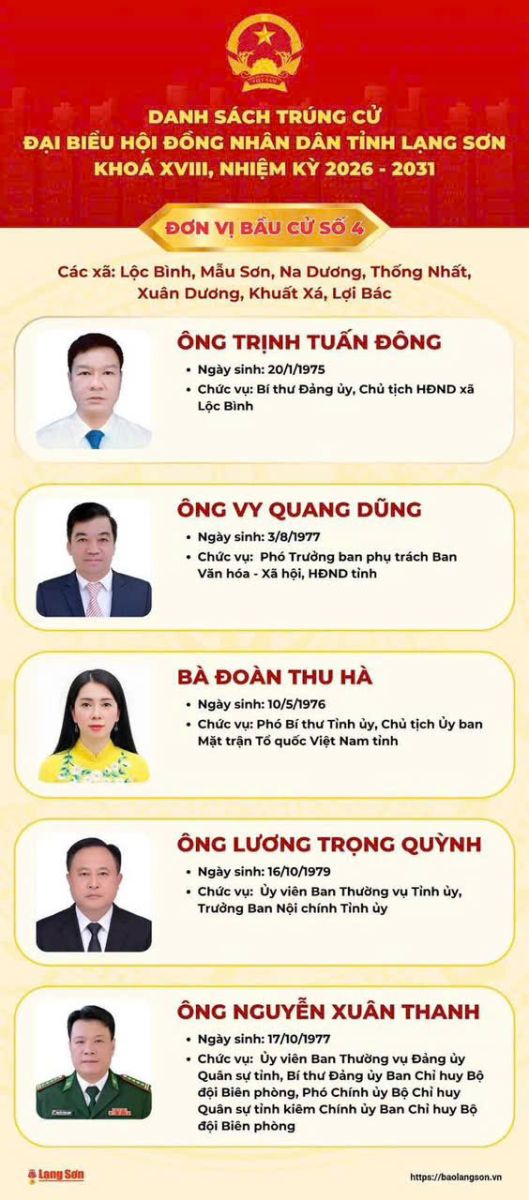 DANH SÁCH ĐẠI BIỂU QUỐC HỘI TỈNH LẠNG SƠN