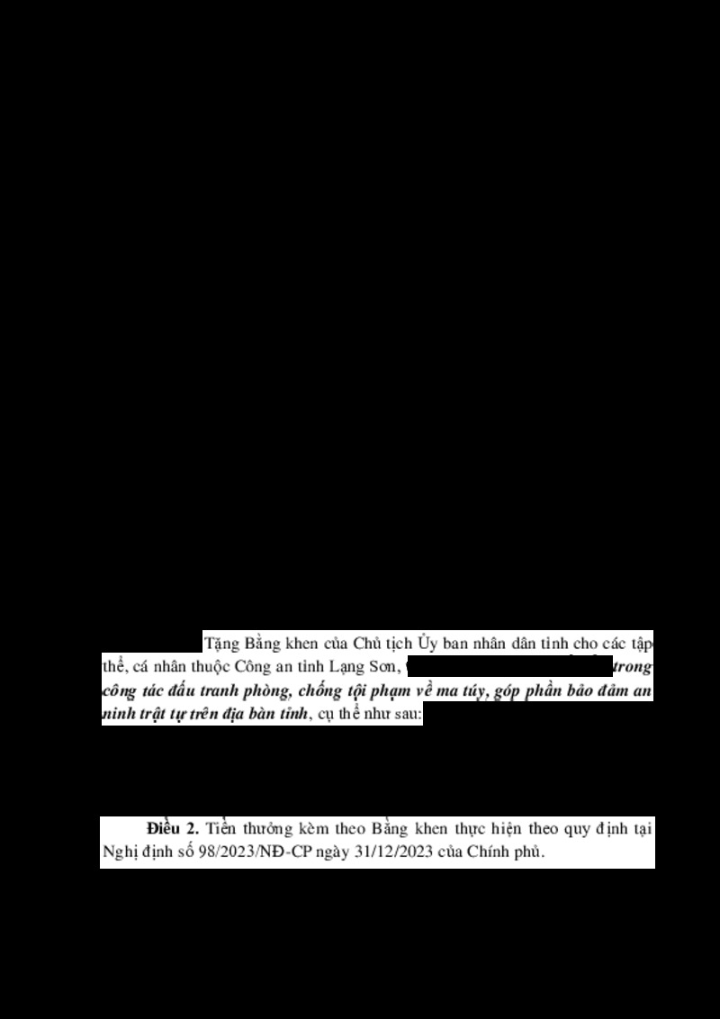 Heading | Quyết định về việc tặng Bằng khen của Chủ tịch Ủy ban nhân dân tỉnh (công tác đấu tranh phòng, chống tội phạm về ma túy, góp phần bảo đảm an ninh trật tự trên địa bàn tỉnh) | ||