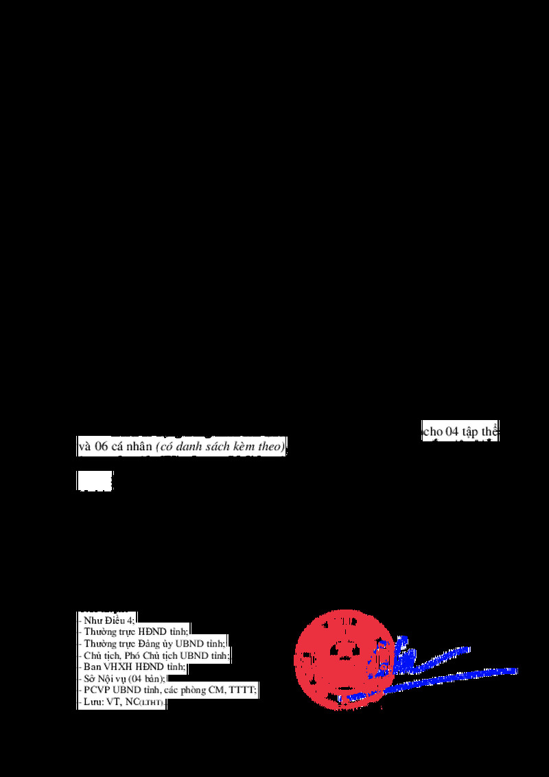 | Tiêu đề văn bản | Về việc tặng Bằng khen của Chủ tịch Ủy ban nhân dân tỉnh (công tác Xây dựng xã hội học tập) | ||