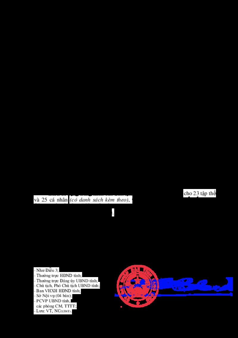 | Tiêu đề văn bản | Về việc tặng Bằng khen của Chủ tịch Ủy ban nhân dân tỉnh (Phong trào thi đua "Cả nước chung tay xóa nhà tạm, nhà dột nát trong năm 2025") (QĐ ĐÃ LẤY SỐ 1912/QĐ-UBND NGÀY 28/8/2025) | ||