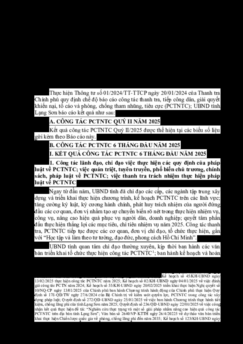 | Tiêu đề văn bản | Báo cáo Kết quả công tác phòng, chống tham nhũng, tiêu cực Quý II/2025 và 6 tháng đầu năm 2025 | ||