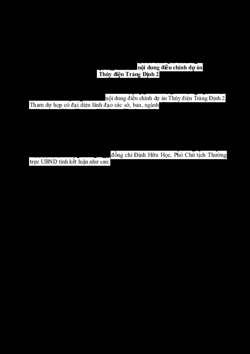 | Tiêu đề văn bản | Kết luận của đồng chí Đinh Hữu Học, Phó Chủ tịch Thường trực UBND tỉnh tại cuộc họp xem xét nội dung điều chỉnh dự án Thủy điện Tràng Định 2 | ||