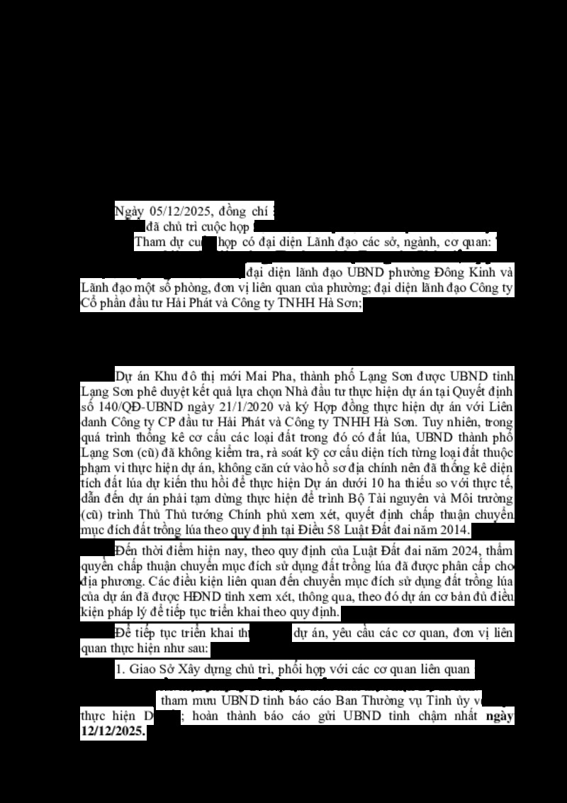 | Tiêu đề văn bản | Kết luận của đồng chí Đinh Hữu Học, Phó Chủ tịch Thường trực UBND tỉnh tại cuộc họp xem xét tiến độ triển khai Dự án Khu đô thị mới Mai Pha | ||