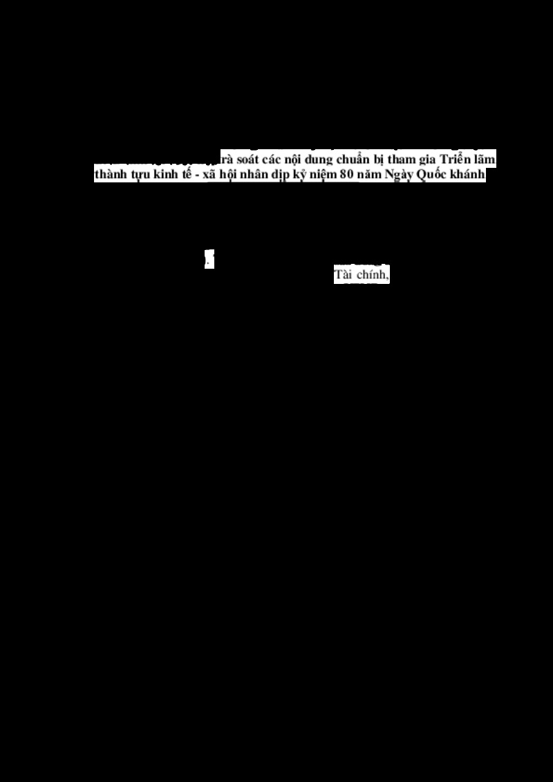 | Tiêu đề văn bản | Kết luận của đồng chí Dương Xuân Huyên, Phó Chủ tịch Thường trực UBND tỉnh tại cuộc họp rà soát các nội dung chuẩn bị tham gia Triển lãm thành tựu kinh tế - xã hội nhân dịp kỷ niệm 80 năm Ngày Quốc khánh (02/9/1945 - 02/9/2025) | ||