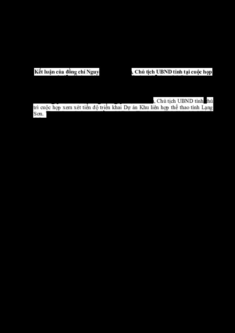 | Tiêu đề văn bản | Thông báo kết luận của đồng chí Nguyễn Cảnh Toàn, Chủ tịch UBND tỉnh tại cuộc họp xem xét tiến độ thực hiện Dự án Khu liên hợp thể thao tỉnh Lạng Sơn | ||