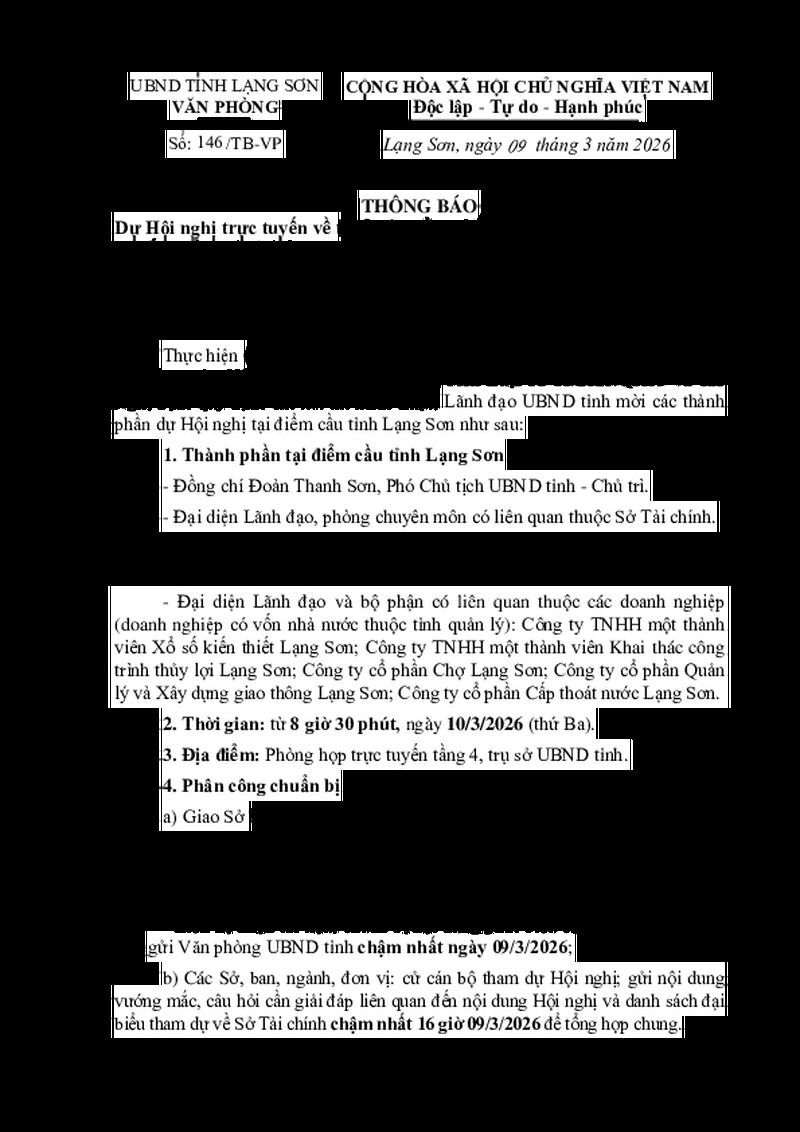 | Loại văn bản | Thông báo, giấy mời UBND tỉnh | Người ký | --- |