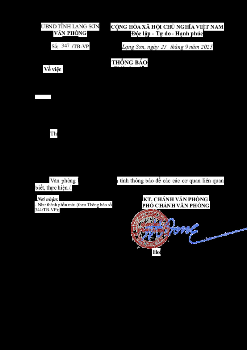 Số hiệu | 347/TB-VP | Cơ quan ban hành | --- |