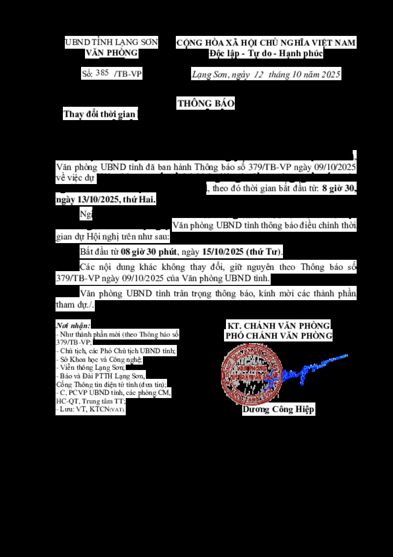 Số hiệu | 385/TB-VP | Cơ quan ban hành | --- |