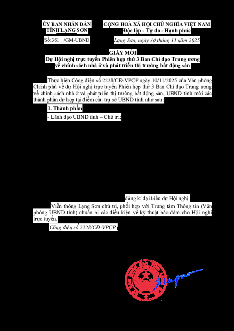 | Tiêu đề văn bản | Giấy mời Dự Hội nghị trực tuyến Phiên họp thứ 3 Ban Chỉ đạo Trung ương về chính sách nhà ở và phát triển thị trường bất động sản | ||