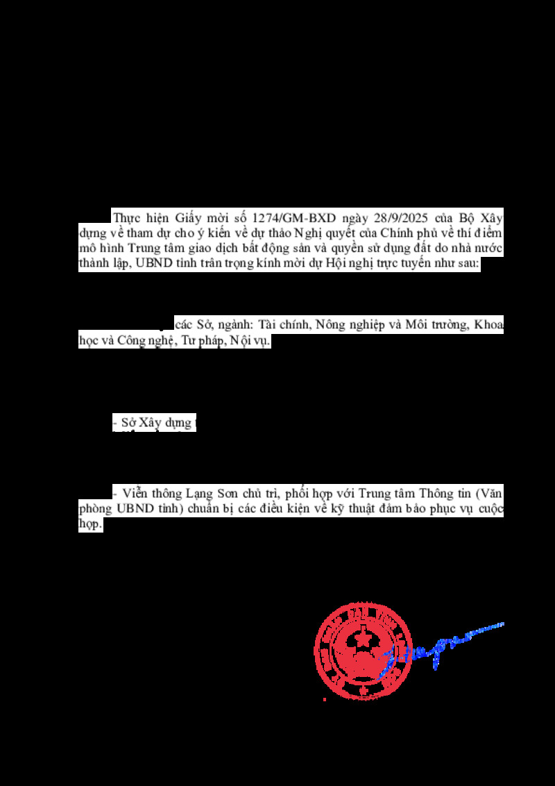 Tiêu đề văn bản | Giấy mời Dự họp trực tuyến với Bộ Xây dựng cho ý kiến về Dự thảo Nghị quyết của Chính phủ về thí điểm mô hình Trung tâm giao dịch bất động sản và quyền sử dụng đất do nhà nước thành lập | ||