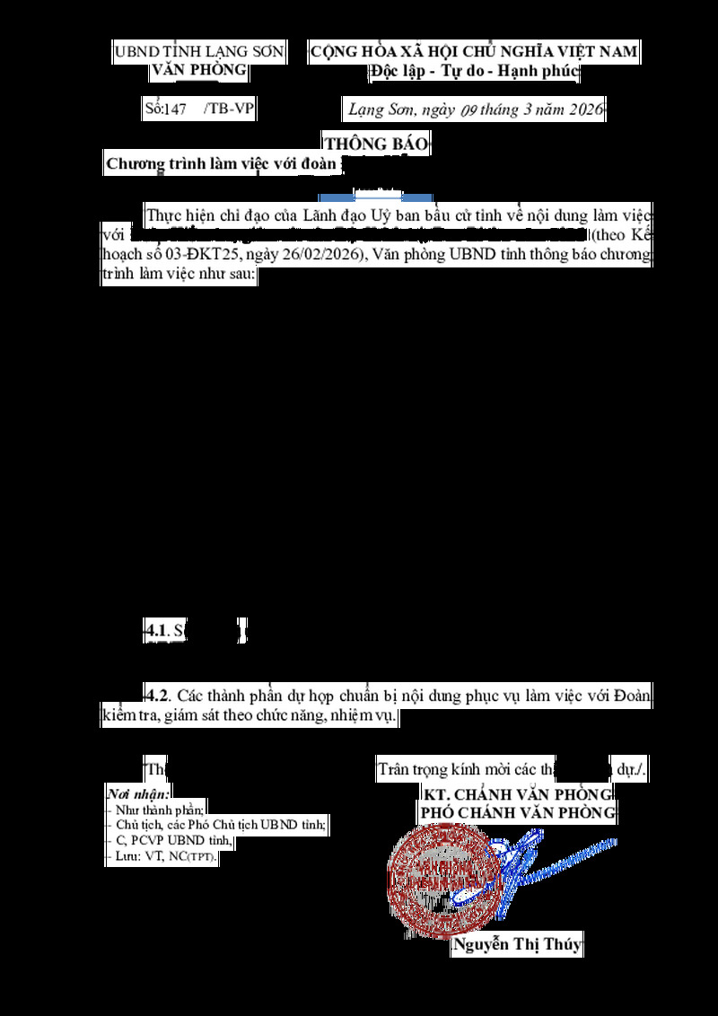 | Tiêu đề văn bản | Thông báo chương trình làm việc với Đoàn Kiểm tra, giám sát của Bộ Chính trị, Ban Bí thư năm 2026 | ||