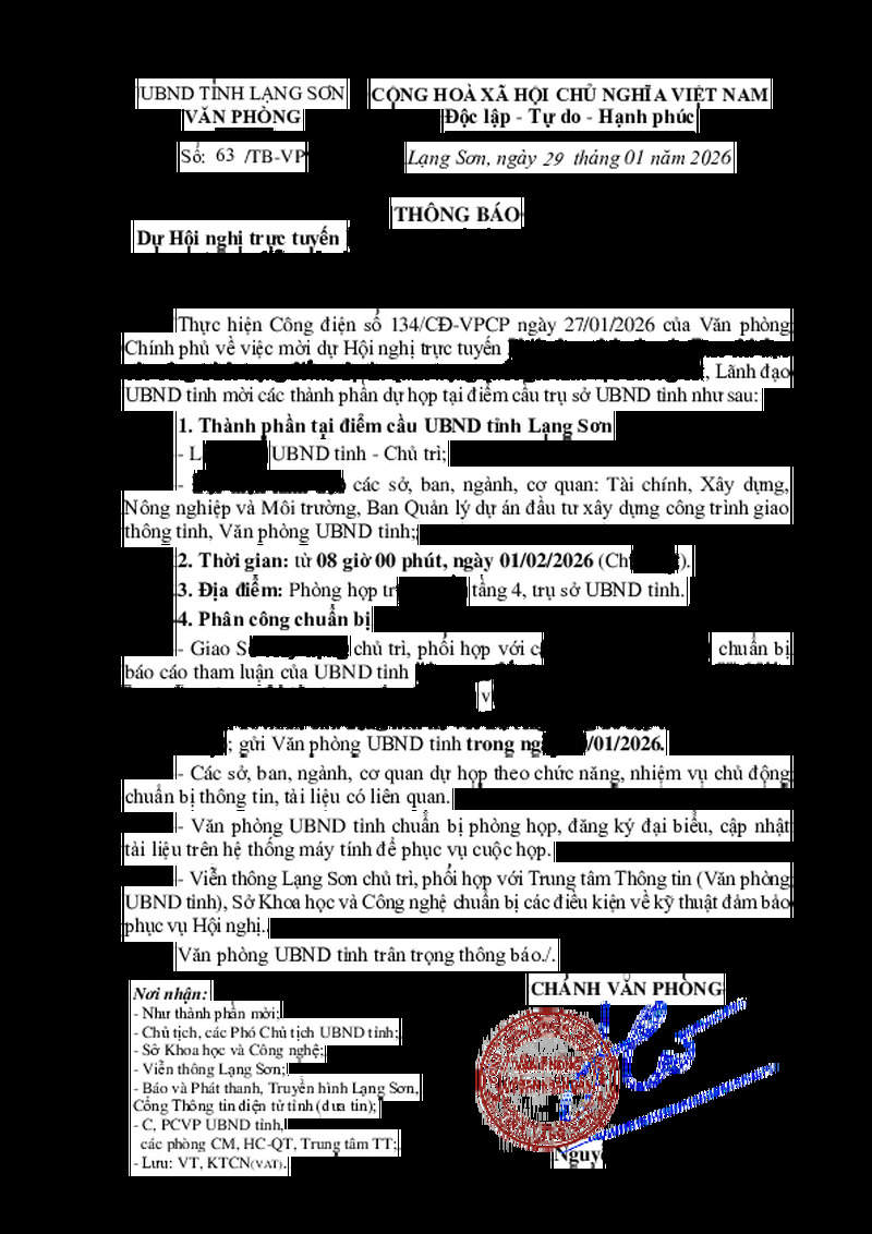 | Loại văn bản | Thông báo, giấy mời UBND tỉnh | Người ký | --- |