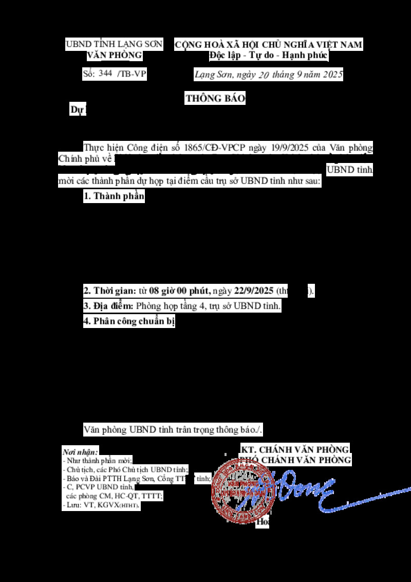 Loại văn bản | Thông báo, giấy mời UBND tỉnh | Người ký | --- |