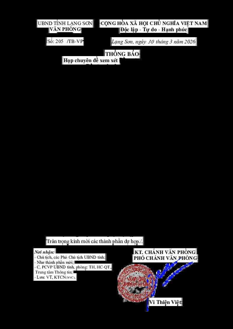 | Loại văn bản | Thông báo, giấy mời UBND tỉnh | Người ký | --- |