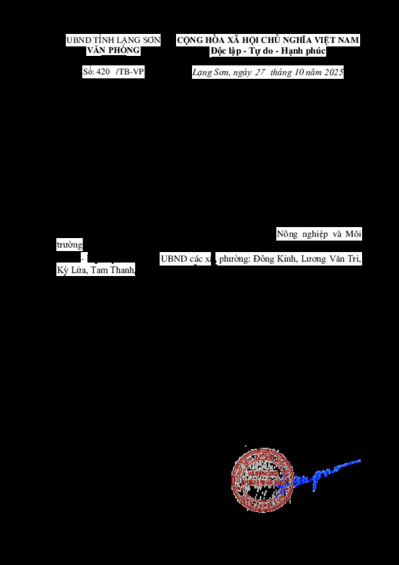 | Số hiệu | 420/TB-VP | Cơ quan ban hành | --- |