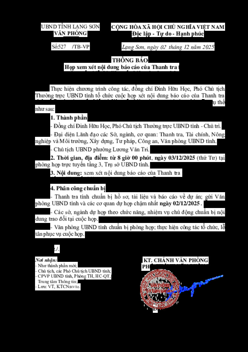| Loại văn bản | Thông báo, giấy mời UBND tỉnh | Người ký | --- |
