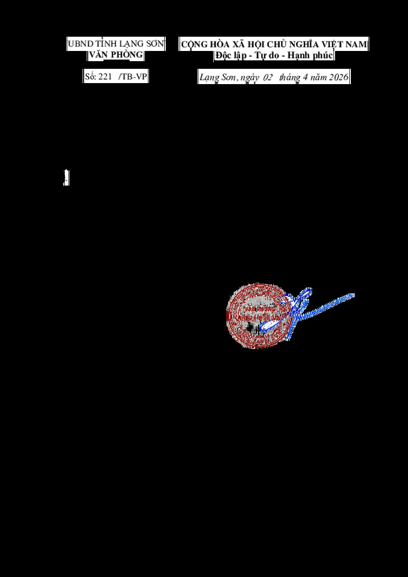| Số hiệu | 221/TB-VP | Cơ quan ban hành | --- |