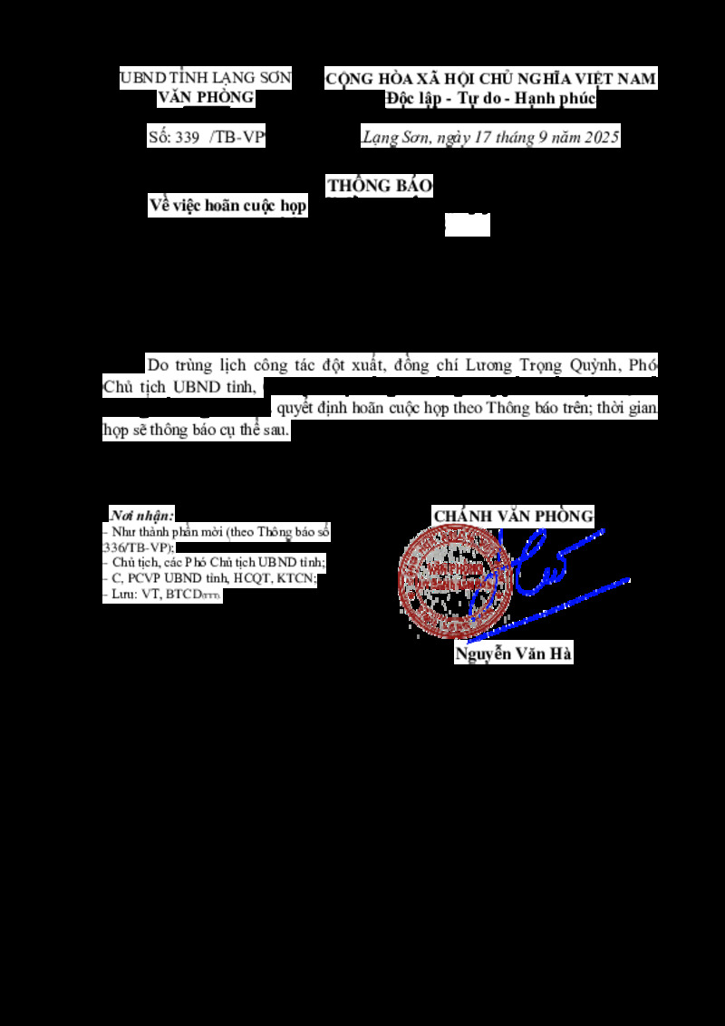Số hiệu | 339/TB-VP | Cơ quan ban hành | --- |