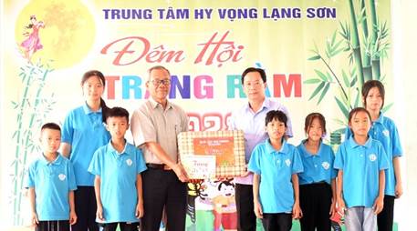 Ảnh: Đồng chí Hoàng Văn Nghiệm, Bí thư Tỉnh ủy, Trưởng Đoàn Đại biểu Quốc hội tỉnh tặng quà Tết Trung thu cho Trung tâm hy vọng Lạng Sơn năm 2024
