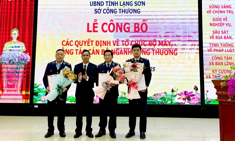 Ảnh: lãnh đạo Sở Công Thương tỉnh Lạng Sơn tặng hoa chúc mừng các đồng chí Chi Cục trưởng, Phó Chi Cục trưởng Chi cục Quản lý Thị trường thuộc Sở Công Thương tỉnh. Nguồn internet.