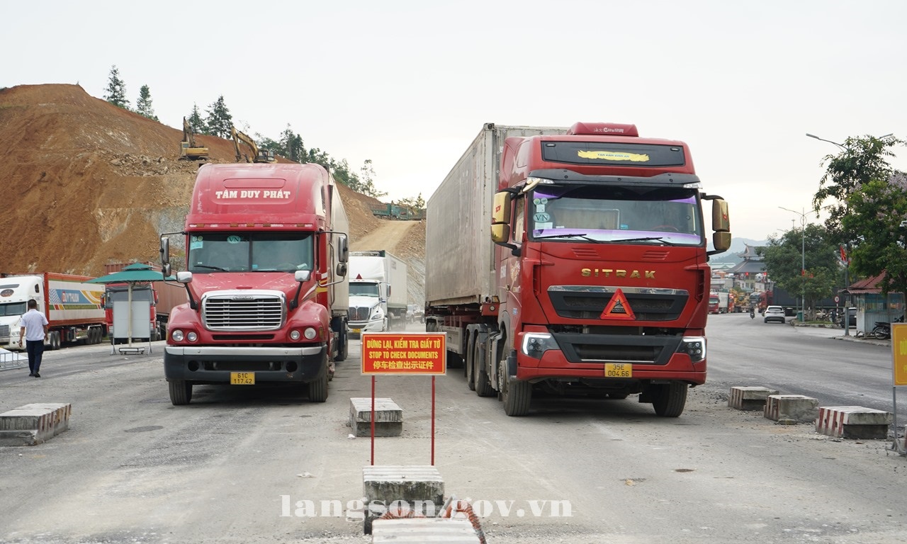 Xe chở hàng chờ XK tại cửa khẩu quốc tế Hữu Nghị