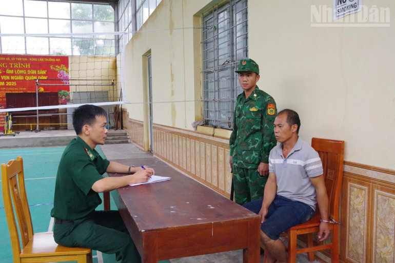 Lực lượng Bộ đội Biên phòng lấy lời khai của đối tượng Nông Văn Lý.