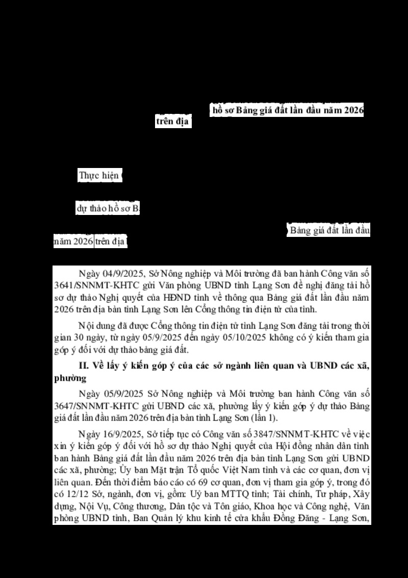 | Tiêu đề văn bản | Báo cáo Giải trình, tiếp thu ý kiến đóng góp của các cơ quan về dự thảo hồ sơ Bảng giá đất lần đầu năm 2026 trên địa bàn tỉnh Lạng Sơn | ||