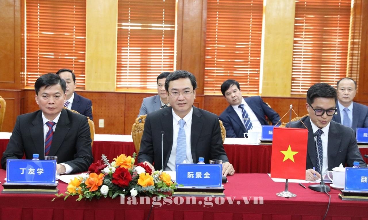 Phát biểu tại hội đàm, Chủ tịch Khu tự trị dân tộc Choang Quảng Tây, Trung Quốc cảm ơn sự đón tiếp trọng thị của tỉnh Lạng Sơn đối với đoàn công tác. Đồng chí nhấn mạnh, Quảng Tây và tỉnh Lạng Sơn có mối quan hệ hợp tác, giao lưu hữu nghị lâu đời; thời gian qua, việc kết nối giao thương, cơ sở hạ tầng giữa Quảng Tây và tỉnh Lạng Sơn đã đạt được tiến triển quan trọng, việc quản lý biên giới được thực hiện hiệu quả, giao lưu nhân văn ngày càng sâu sắc hơn.