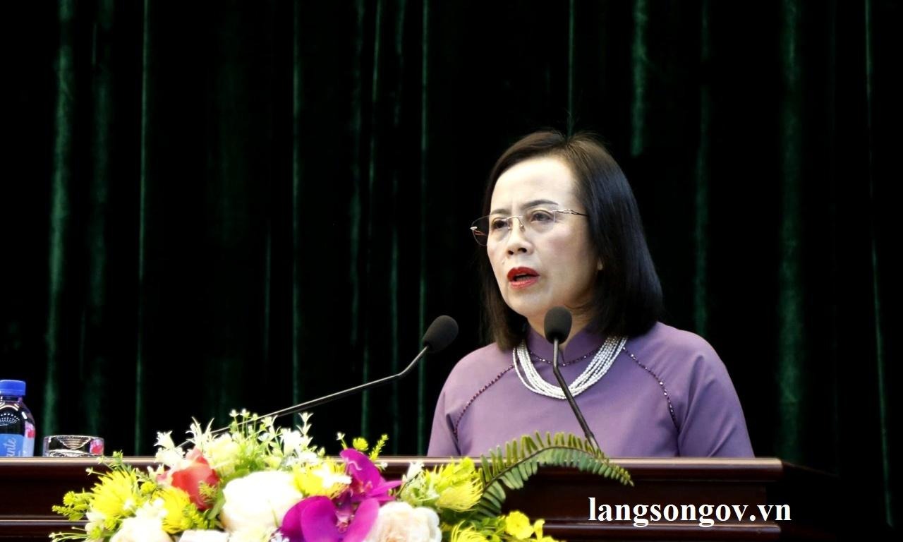 Đồng chí Đoàn Thị Hậu, Phó Bí thư Thường trực Tỉnh ủy, Chủ tịch HĐND tỉnh phát biểu giao nhiệm vụ tại hội nghị