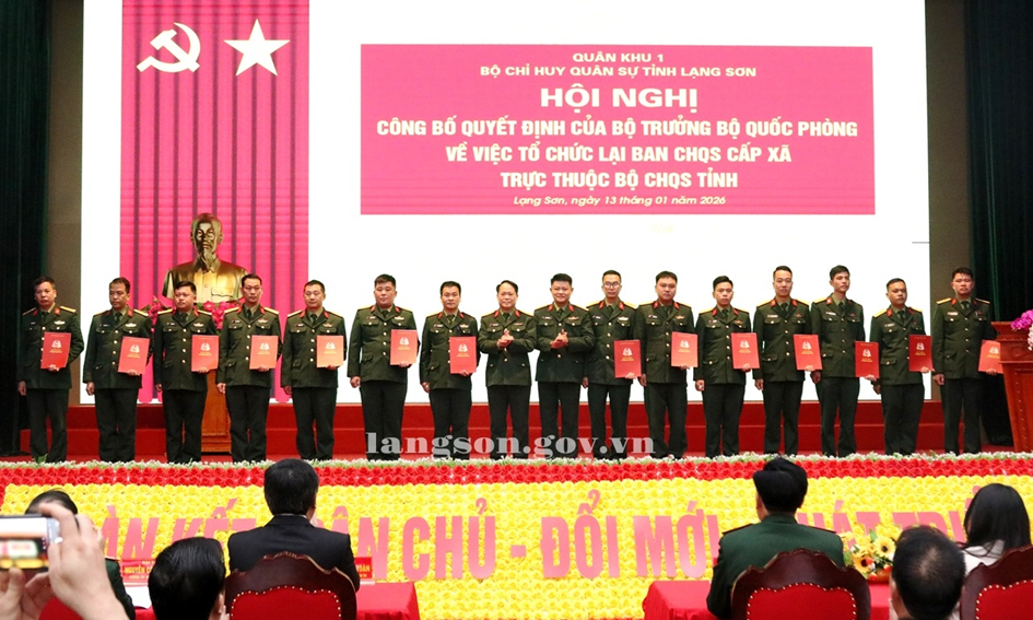 Tại hội nghị, các đại biểu đã nghe công bố Quyết định của Bộ trưởng Bộ Quốc phòng về việc tổ chức lại Ban Chỉ huy quân sự (CHQS) xã, phường, đặc khu trực thuộc Bộ CHQS tỉnh, thành phố và Bộ Tư lệnh Thủ đô Hà Nội, Bộ Tư lệnh thành phố Hồ Chí Minh; Quyết định của Chủ tịch UBND tỉnh Lạng Sơn về việc miễn nhiệm chức vụ Chỉ huy trưởng Ban CHQS cấp xã, phường tỉnh Lạng Sơn.