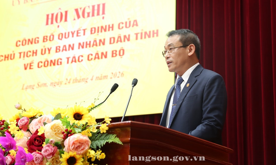 Sáng 24/4/2026, UBND tỉnh tổ chức hội nghị công bố các quyết định của Chủ tịch UBND tỉnh về công tác cán bộ. Dự hội nghị có đồng chí Nguyễn Cảnh Toàn, Phó Bí thư Tỉnh ủy, Chủ tịch UBND tỉnh; đồng chí Đoàn Thanh Sơn, Phó Chủ tịch UBND tỉnh cùng tập thể lãnh đạo, công chức, viên chức Sở Văn hóa, Thể thao và Du lịch; Sở Dân tộc và Tôn giáo.