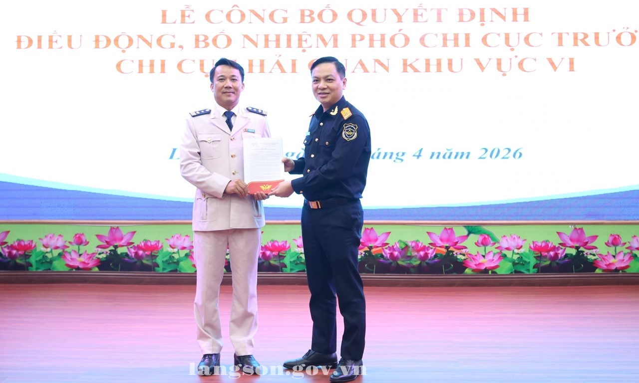 Sáng 03/4/2026, Cục Hải quan (Bộ Tài chính) tổ chức Hội nghị công bố quyết định điều động, bổ nhiệm Phó Chi cục trưởng Chi cục Hải quan khu vực VI. Dự hội nghị có đồng chí Đoàn Thanh Sơn, Phó Chủ tịch UBND tỉnh; đồng chí Nguyễn Thành Hưng, Phó Cục trưởng Cục Hải quan; lãnh đạo, cán bộ chủ chốt Chi cục Hải quan khu vực VI; lãnh đạo, cán bộ chủ chốt Chi cục Hải quan khu vực XI.