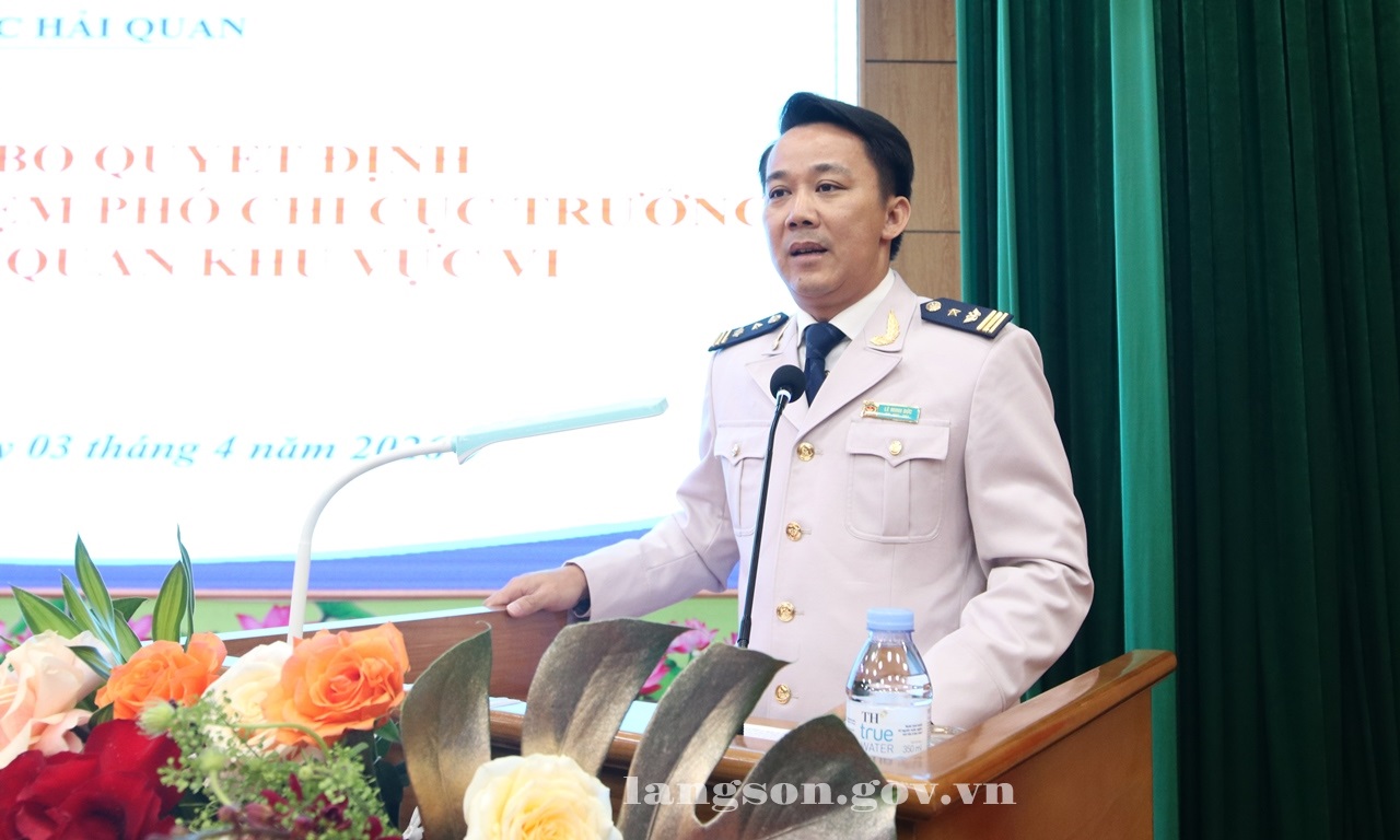 Phát biểu nhận nhiệm vụ, đồng chí Lê Minh Đức, tân Phó Chi cục trưởng Chi cục Hải quan khu vực VI gửi lời cảm ơn đến lãnh đạo Bộ Tài chính, Cục Hải quan, Tỉnh ủy, HĐND, UBND tỉnh Lạng Sơn đã tín nhiệm, bổ nhiệm vị trí công tác mới. Đồng thời báo cáo Chương trình hành động công tác, qua đó, nhấn mạnh sự quyết tâm sẽ cùng Đảng ủy, lãnh đạo Chi cục Hải quan khu vực VI tiếp tục củng cố khối đoàn kết, thống nhất toàn đơn vị; hứa sẽ luôn nỗ lực, học hỏi, bắt tay ngay vào nhiệm vụ mới, kế thừa những kinh nghiệm cùng với tập thể lãnh đạo Chi cục Hải quan khu vực VI xây dựng đơn vị đoàn kết, vững mạnh, kỷ cương, liêm chính, chính quy, hiện đại, góp phần hoàn thành xuất sắc nhiệm vụ chính trị được giao.