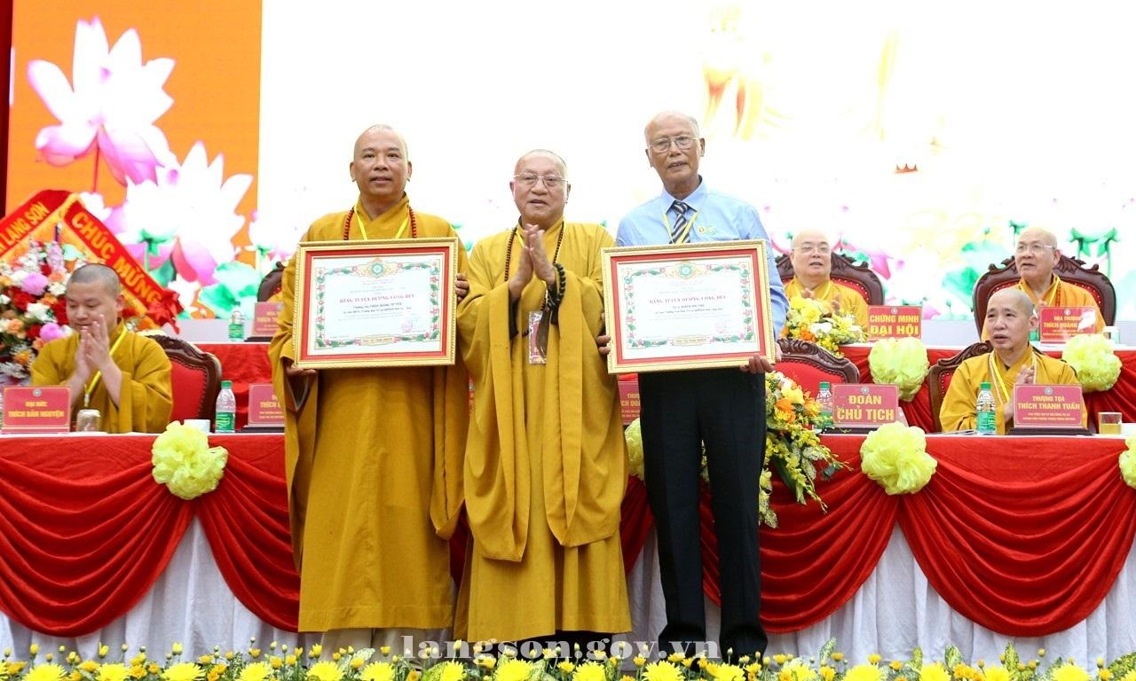 Nhân dịp này, Ban Trị sự Giáo hội Phật giáo Việt Nam tỉnh Lạng Sơn và Thượng toạ Thích Quảng Truyền, Uỷ viên Hội đồng Trị sự Trung ương Giáo hội Phật giáo Việt Nam, Trưởng ban Trị sự Giáo hội Phật Giáo Việt Nam tỉnh Lạng Sơn vinh dự được nhận Bằng khen của Thủ tướng Chính phủ vì đã có thành tích xuất sắc trong hoạt động xã hội, nhân đạo từ thiện, sống “tốt đời, đẹp đạo”, góp phần vào sự nghiệp xây dựng chủ nghĩa xã hội và bảo vệ Tổ quốc; 01 tập thể, 03 cá nhân được tặng Bằng khen của Chủ tịch UBND tỉnh vì có thành tích xuất sắc trong hoạt động Phật sự nhiệm kỳ 2022-2026; 01 tập thể, 02 cá nhân được nhận Bằng tuyên dương công đức của Trung ương Giáo hội Phật giáo Việt Nam vì có thành tích xuất sắc trong công tác Phật sự nhiệm kỳ 2022-2026./.