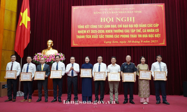 Nhân dịp này, 10 tập thể, 17 cá nhân đã được nhận giấy khen của Ban Thường vụ Đảng ủy UBND tỉnh vì đã có thành tích xuất sắc trong phòng trào thi đua đặc biệt lập thành tích chào mừng Đại hội Đảng bộ các cấp, Đại hội đại biểu Đảng bộ UBND tỉnh lần thứ I, tiến tới Đại hội Đảng bộ tỉnh Lạng Sơn lần thứ XVIII, nhiệm kỳ 2025-2030; 08 tập thể, 05 cá nhân vinh dự nhận giấy khen vì đã có thành tích xuất sắc trong phòng trào thi đua “dân vận khéo” giai đoạn 2021-2025./.