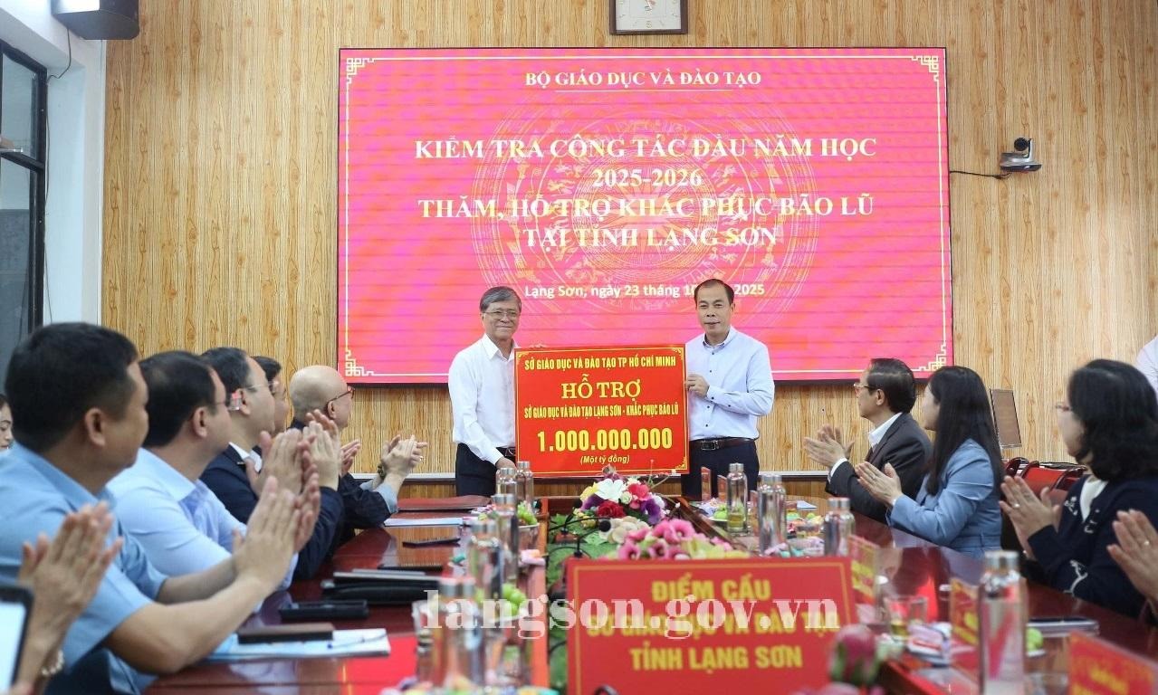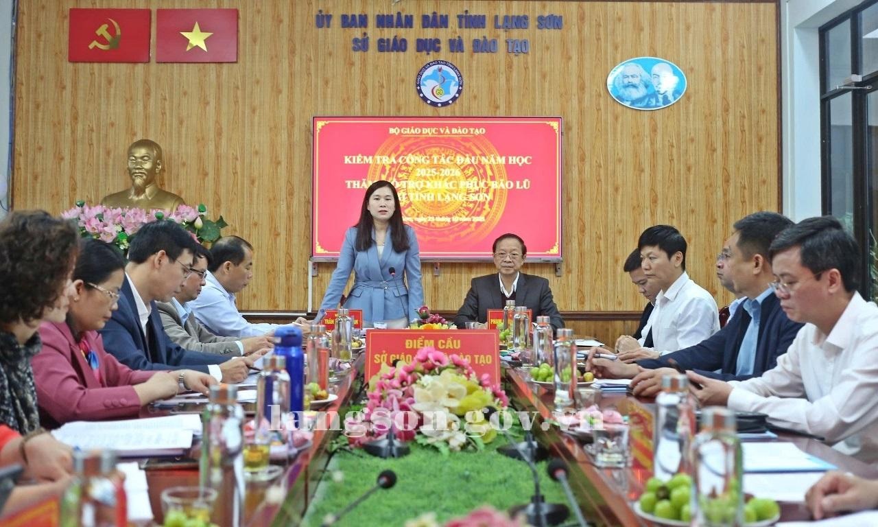 Ngày 23/10/2025, đoàn công tác của Bộ Giáo dục và Đào tạo (GD&ĐT) do đồng chí Phạm Ngọc Thưởng, Thứ trưởng Thường trực Bộ GD&ĐT làm trưởng đoàn kiểm tra công tác đầu năm học 2025 - 2026 và hỗ trợ khắc phục hậu quả thiên tai sau cơn bão số 11 tại Lạng Sơn. Làm việc với đoàn có đồng chí Trần Thanh Nhàn, Phó Chủ tịch UBND tỉnh; lãnh đạo Ủy ban MTTQ Việt Nam tỉnh, lãnh đạo Sở Nông Nghiệp và Môi trường, Văn phòng UBND tỉnh, Sở Giáo dục và Đào tạo và cán bộ phòng chuyên môn Sở GD&ĐT.