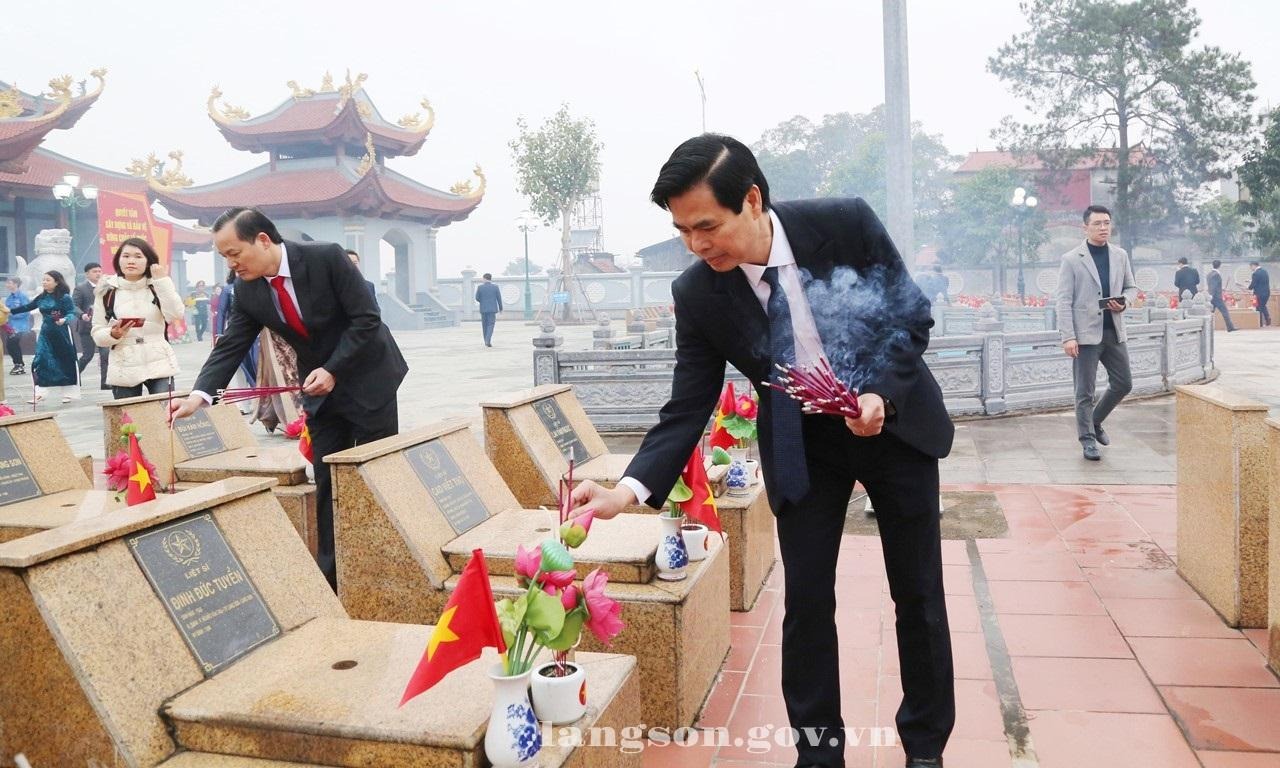 Đồng chí Đinh Hữu Học, Uỷ viên Ban Thường vụ Tỉnh uỷ, Phó Chủ tịch Thường trực UBND tỉnh thắp hương các phần mộ liệt sĩ tại Nghĩa trang liệt sĩ Lạng Sơn