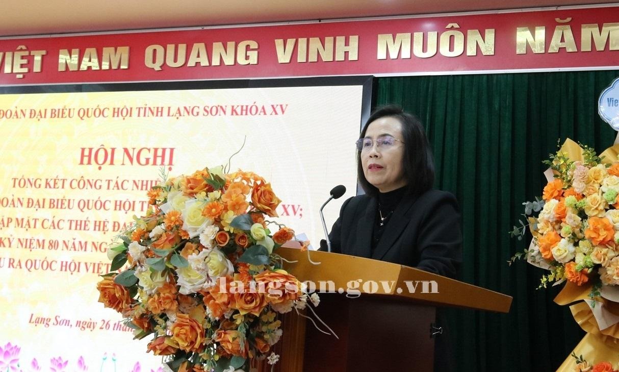 Phát biểu tại hội nghị, đồng chí Đoàn Thị Hậu, Phó Bí thư Thường trực Tỉnh uỷ nhấn mạnh: Cấp ủy và chính quyền tỉnh Lạng Sơn luôn ghi nhận và đánh giá cao kết quả hoạt động của Đoàn ĐBQH tỉnh các khóa trong từng thời kỳ; trong đó, Đoàn ĐBQH tỉnh khóa XV và các ĐBQH trong đoàn đã thực hiện tốt trách nhiệm của mình trong công tác xây dựng pháp luật, giám sát và quyết định các vấn đề quan trọng của đất nước, phát huy tốt vai trò đại diện cho cử tri tại diễn đàn Quốc hội, là cầu nối giữa địa phương với Trung ương, giữa Đảng, Nhà nước với Nhân dân.