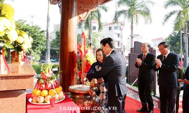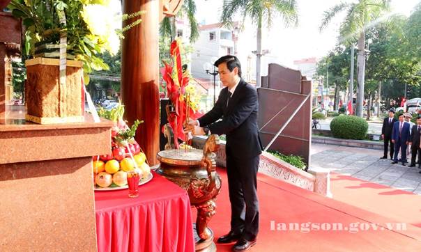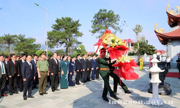 Trong không khí trang nghiêm, Đoàn đại biểu của tỉnh Lạng Sơn đã thành kính dâng hương, dâng hoa tưởng nhớ, bày tỏ lòng biết ơn sâu sắc trước công lao to lớn của Chủ tịch Hồ Chí Minh, đồng chí Hoàng Văn Thụ, các tiền bối cách mạng và của các anh hùng liệt sĩ đã chiến đấu, hy sinh vì nền độc lập, tự do của Tổ quốc.