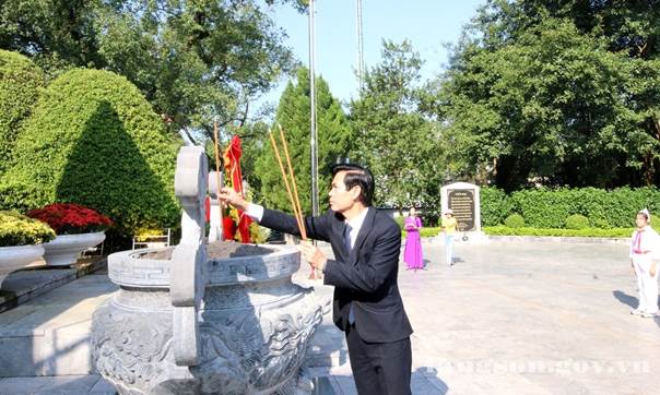 Các đồng chí lãnh đạo tỉnh dâng hương tại Khuôn viên lưu niệm Chủ tịch Hồ Chí Minh